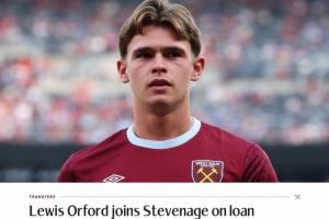 体育资讯9月2日讯 西汉姆确认,19岁中场球员刘易斯-奥福德租借加盟英甲斯蒂文尼奇,租期一个赛季。