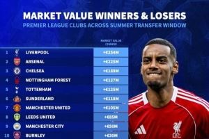 体育资讯9月4日讯 今年夏天,英超各俱乐部在单个转会窗口的转会费支出创下了纪录,高达35.9亿欧元。《转会市场》也统计了经过今夏(夏季转会窗口被定义为为6月1日至9月2日,其中包括世俱杯的临时转会窗口)的转会操作后各队的总身价变化情况,利物浦、阿森纳和切尔西分列前三,而桑德兰的身价增幅最大、达到68.4%。
